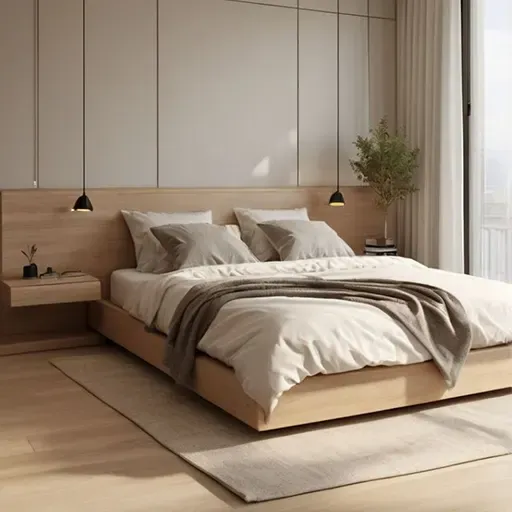 Comfort-focused bedroom interiors with elegant wardrobes, lighting, and storage solutions.